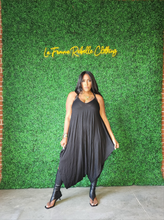 This is an LFR Essential... Shop this ultra comfy Harem Jumper featuring v-neck collar, spaghetti straps and wide legged draped trousers. Shown with the La Femme Léopard Kimono.